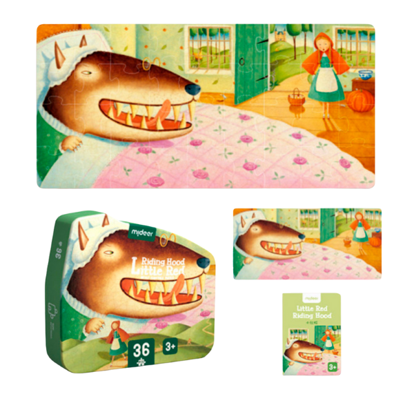 ¡Revive la magia del clásico cuento de Caperucita Roja con este encantador rompecabezas de Mideer!  Con ilustraciones detalladas y llenas de color, los niños podrán armar escena por escena la historia de la pequeña Caperucita y su encuentro con el lobo, mientras desarrollan su creatividad, concentración y habilidades cognitivas.