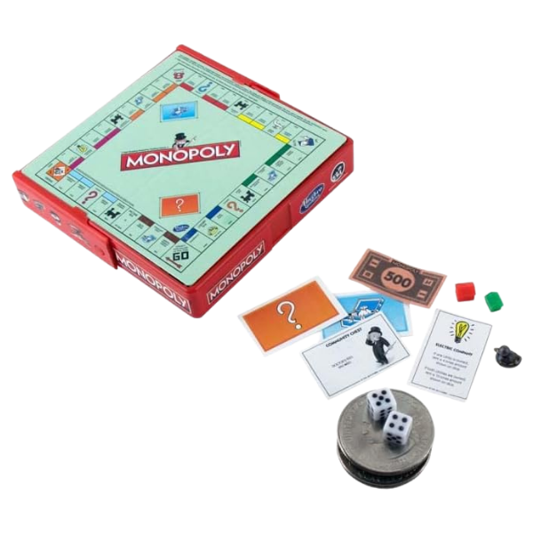 A pesar de su tamaño compacto, este Monopoly incluye tablero, tarjetas, fichas, casas, hoteles y dinero, todo cuidadosamente diseñado para mantener la experiencia original del juego en una versión de bolsillo. Ideal para jugar en cualquier lugar o simplemente exhibirlo como pieza de colección.