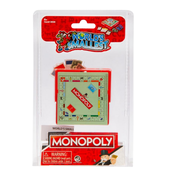 ¡El clásico juego de bienes raíces ahora en su versión más pequeña! La edición World’s Smallest Monopoly conserva toda la diversión del juego original en un formato mini, perfecto para coleccionistas, fanáticos de Monopoly o amantes de los juguetes retro.
