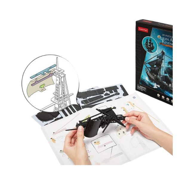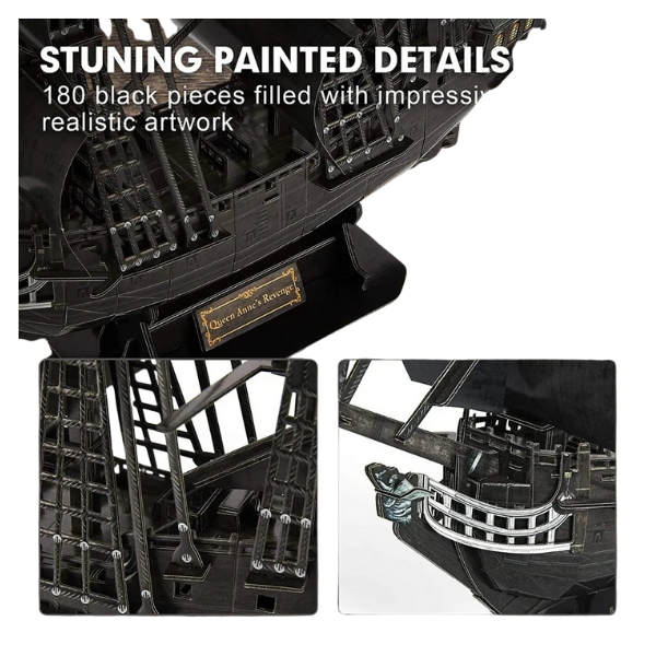 Revive la emoción de los mares con este increíble rompecabezas 3D del legendario barco pirata La Venganza de la Reina Anne. Revive la era dorada de la piratería y construye el infame barco de Barbanegra, recreado con detalles exquisitos que capturan su ferocidad y majestuosidad. Con 180 piezas de alta calidad, este modelo te permitirá armar paso a paso una réplica detallada y espectacular, sin necesidad de pegamento ni herramientas.