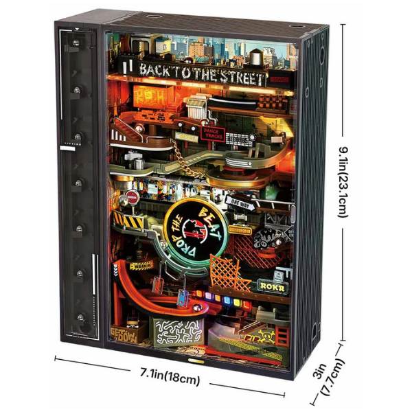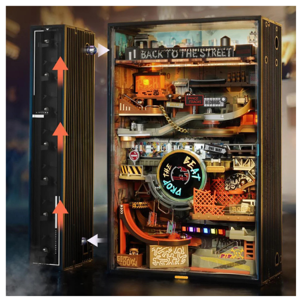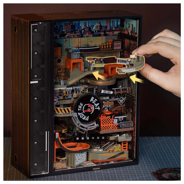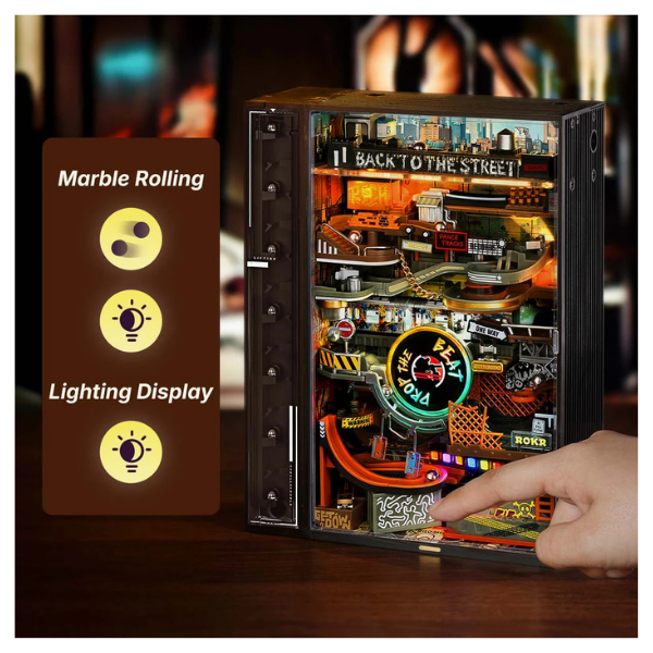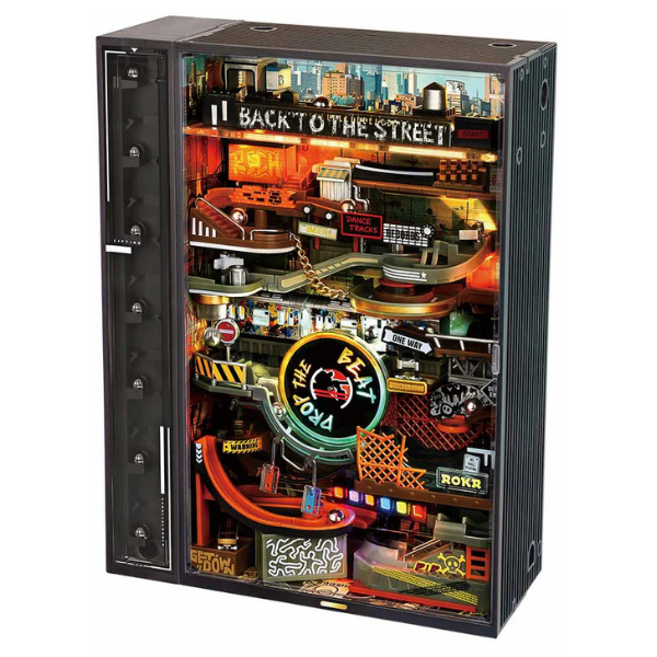El modelo ROKR Hip-Hop Street Marble Run MR03S es mucho más que un rompecabezas 3D: es una máquina en movimiento con estilo urbano. Este kit combina ingeniería, arte y dinamismo para crear una pista de canicas interactiva ambientada en una ciudad inspirada en la cultura hip-hop.
