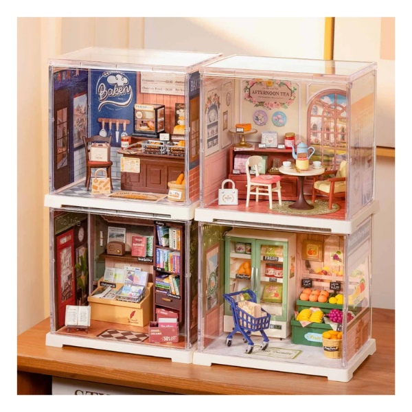 Cada pieza del kit ha sido cuidadosamente diseñada para facilitar un ensamblaje intuitivo y detallado. Con accesorios realistas, mobiliario, decoración temática y iluminación LED incluida, esta mini panadería aporta un toque cálido y artístico a tu hogar, oficina o vitrina.