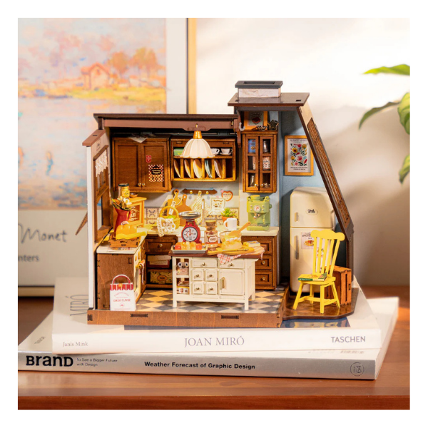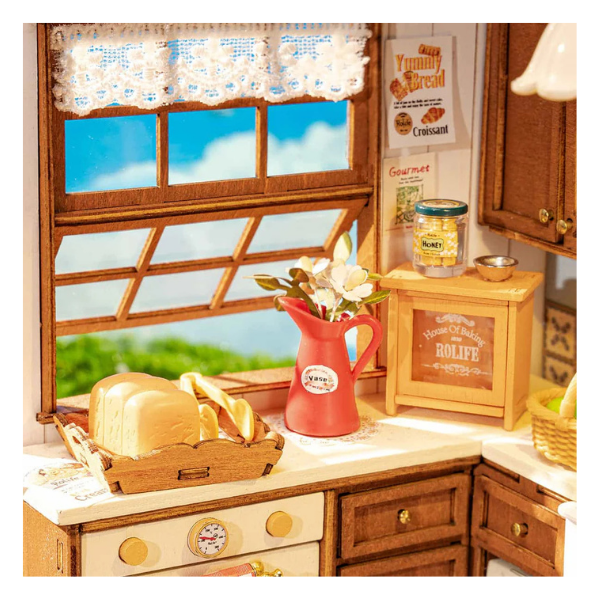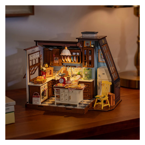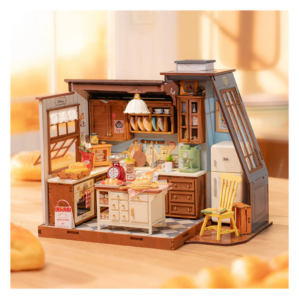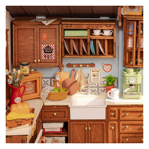 Descubre la calidez de la cocina en su versión miniatura DIY (hazlo tú mismo) con este encantador kit de Rolife Baking Kitchen que te transporta a una cocina vintage llena de detalles realistas y nostalgia.