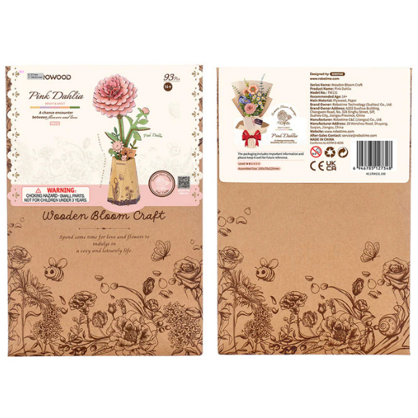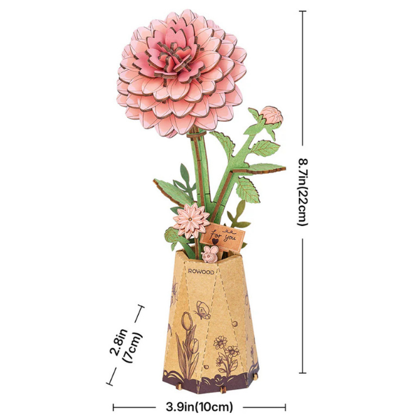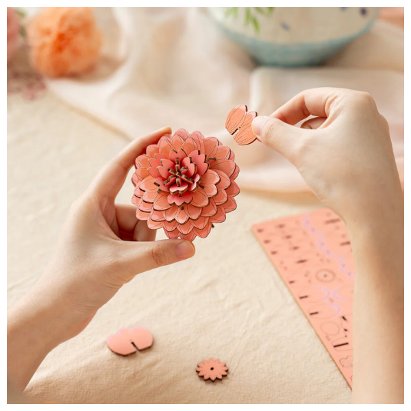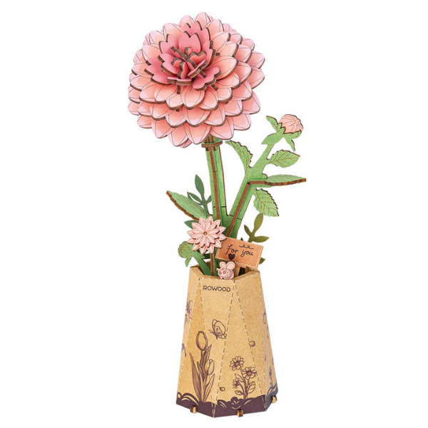 El modelo Rowood Pink Dahlia TW131 es una pieza pequeña en tamaño, pero con presencia elegante. Este rompecabezas 3D de madera recrea una dalia en tonos rosados con un diseño detallado que aporta suavidad visual y un aire decorativo muy delicado.