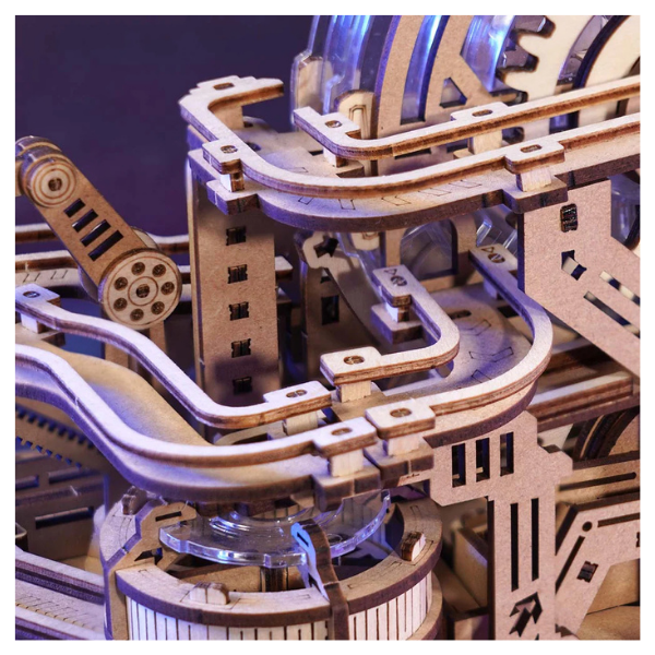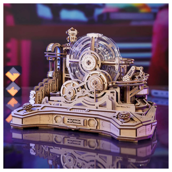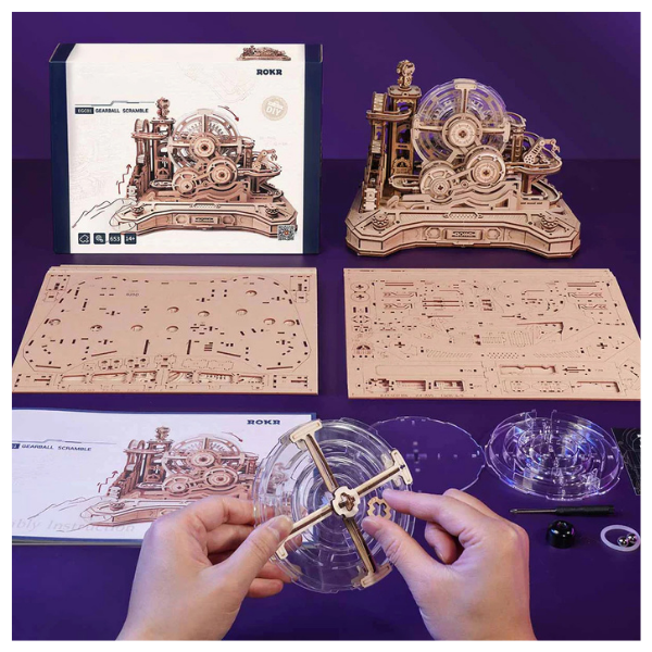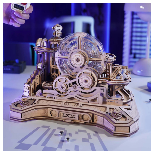 El modelo ROKR Gear Ball Challenge EGC01 es un rompecabezas 3D que se siente más como una consola mecánica que como un simple armado. Aquí no solo construyes… compites. Es un circuito interactivo donde cada giro, palanca y decisión define el destino de la canica.