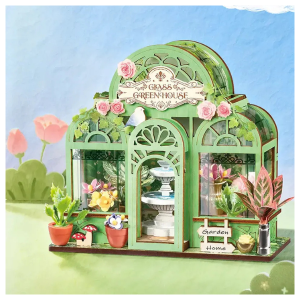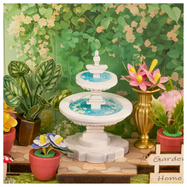 Crea un pequeño oasis lleno de calma y detalle con el modelo Green Fountain Garden de Rolife. Este kit DIY representa un encantador jardín con una elegante fuente central, rodeado de flores, plantas y una arquitectura delicada que transmite frescura y armonía en cada rincón.
