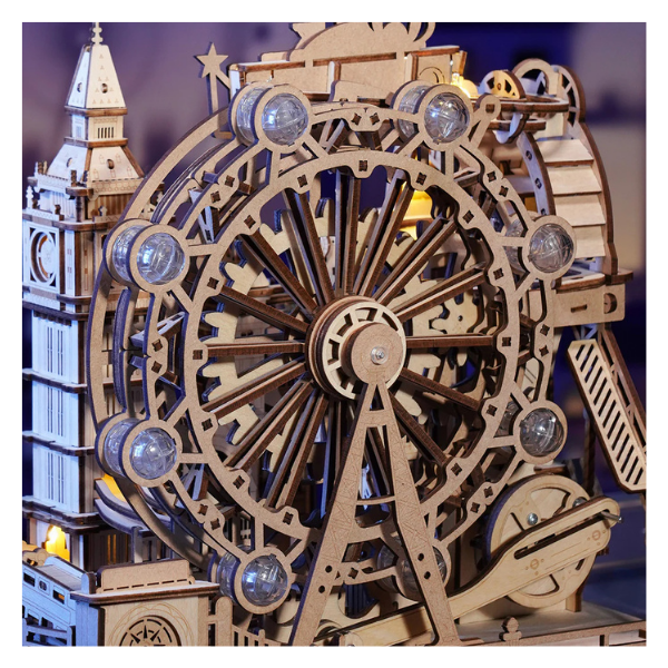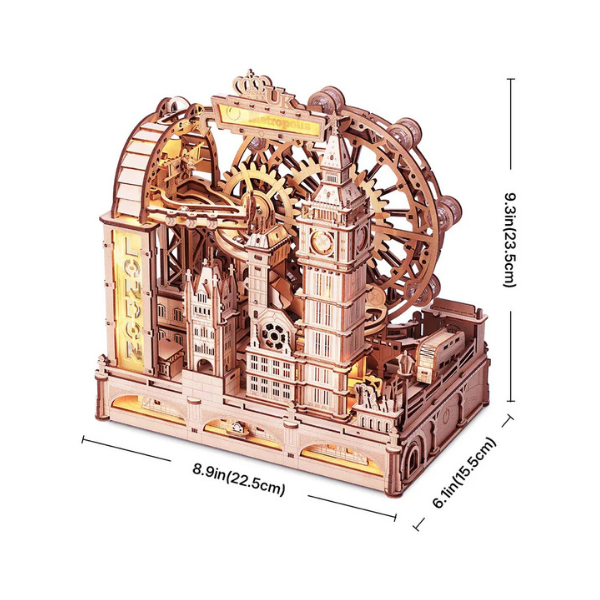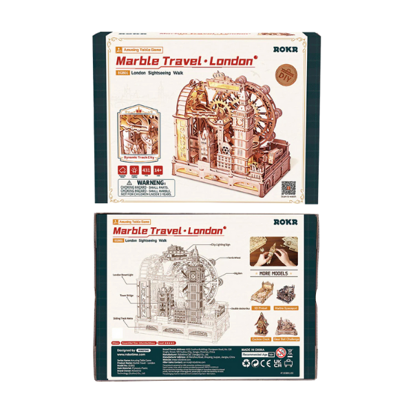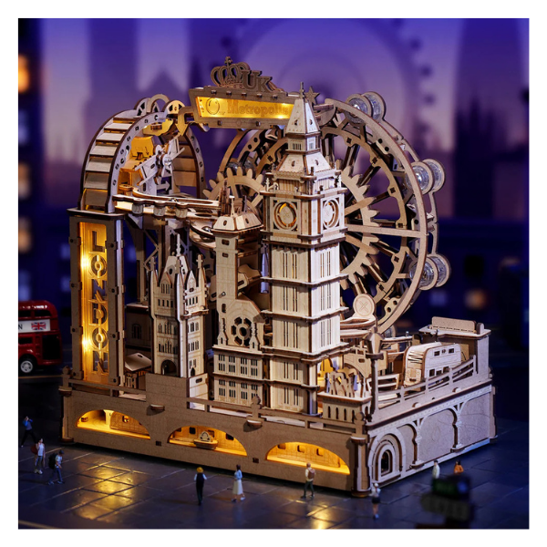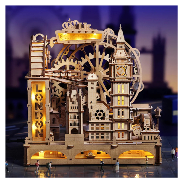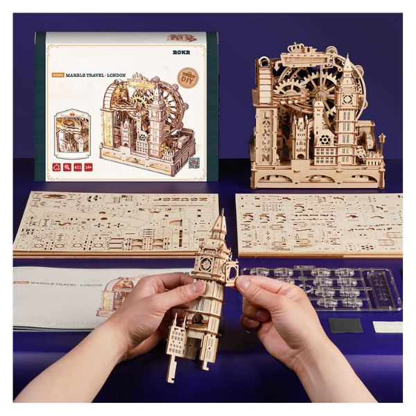 Descubre un rompecabezas 3D funcional y dinámico que va más allá de un simple modelo: este kit ROKR Marble Travel • London Marble Run te permite construir una mini-ciudad interactiva inspirada en los monumentos más icónicos de Londres. Con cada pieza ensamblada, transformarás madera cortada con láser en una verdadera obra de ingeniería que cobra vida cuando las canicas comienzan a deslizarse por los circuitos que tú mismo has creado.