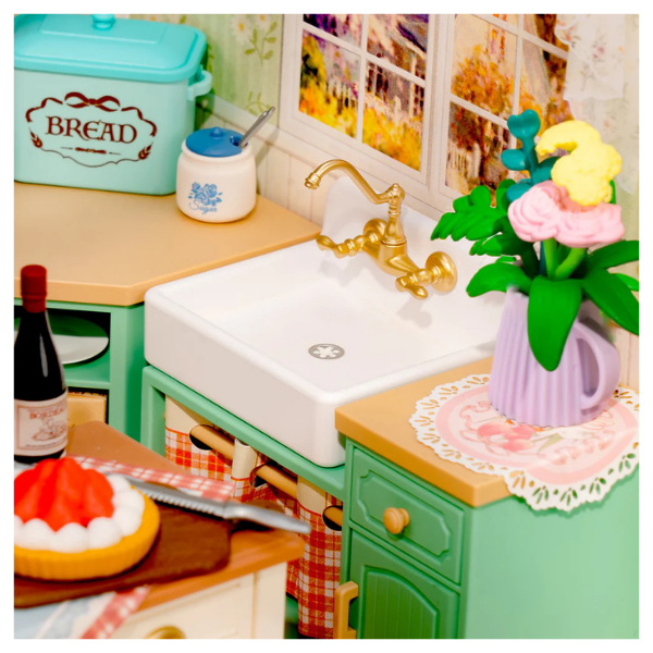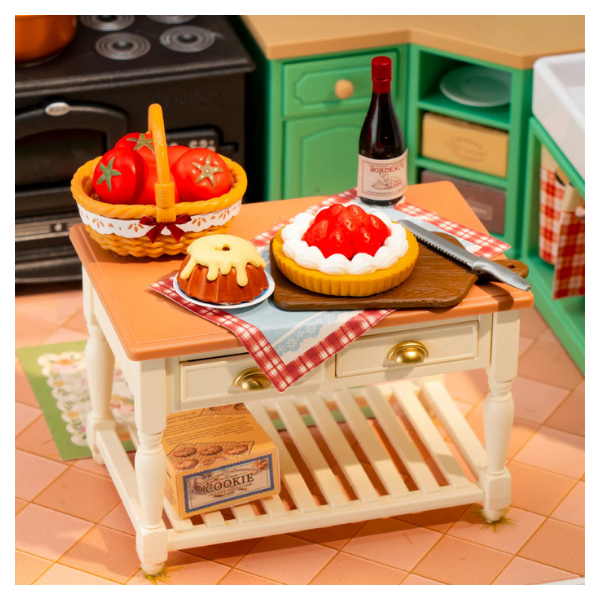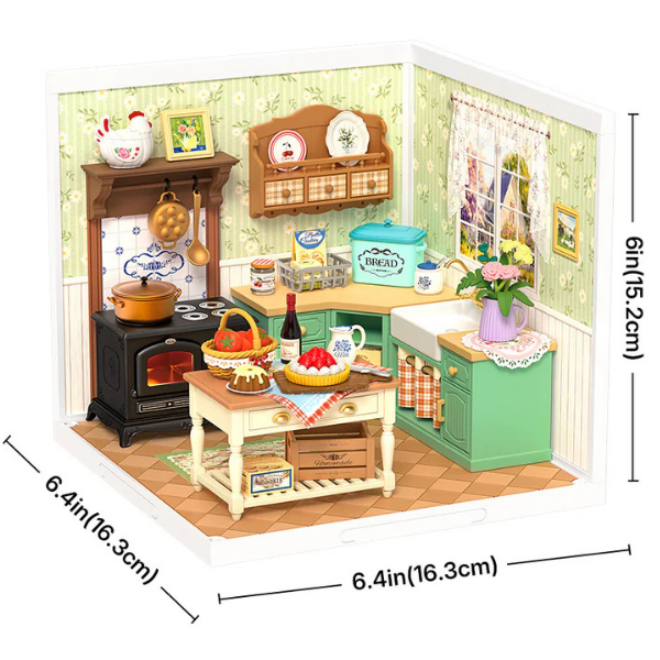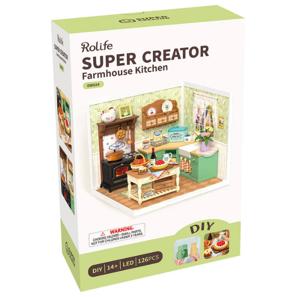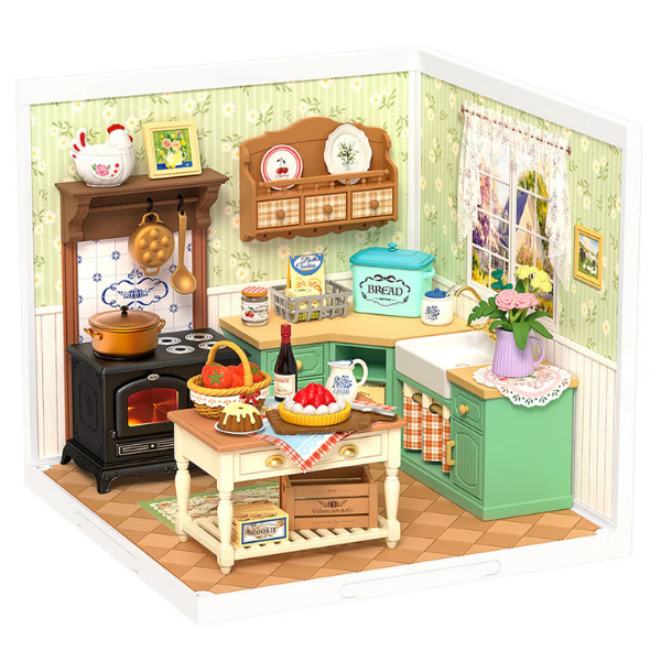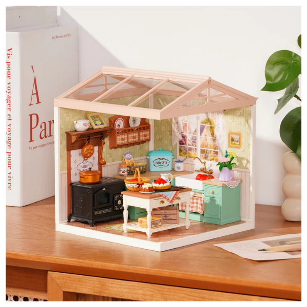 Construye una acogedora cocina estilo campestre con este kit DIY de Rolife. El modelo DW024 “Farmhouse Kitchen” recrea un espacio cálido y hogareño, lleno de detalles como estufa clásica, utensilios, alimentos y decoración que evocan la vida tranquila del campo.