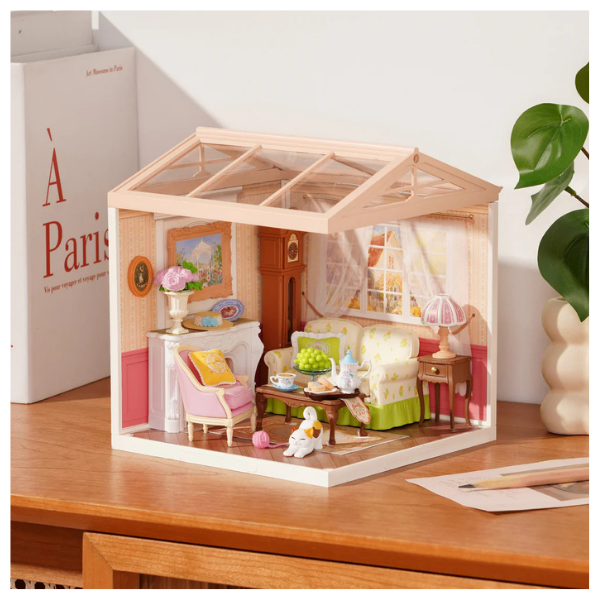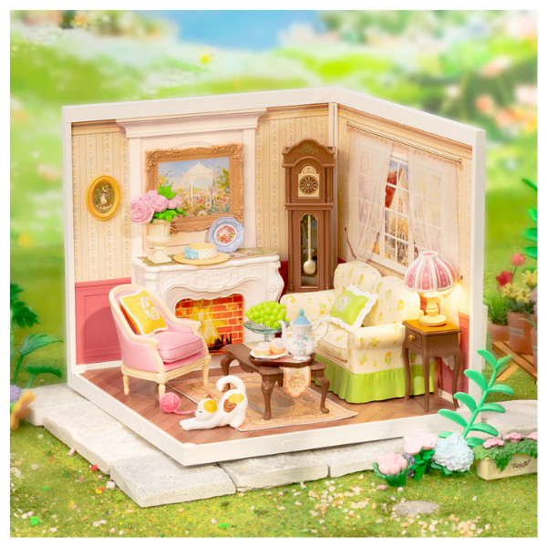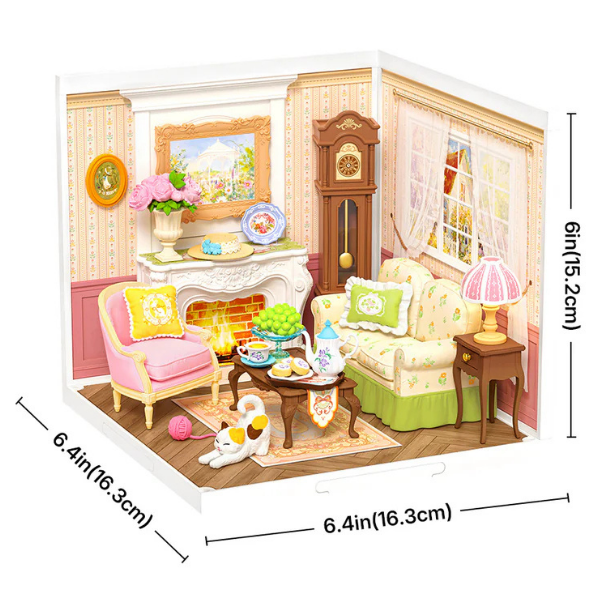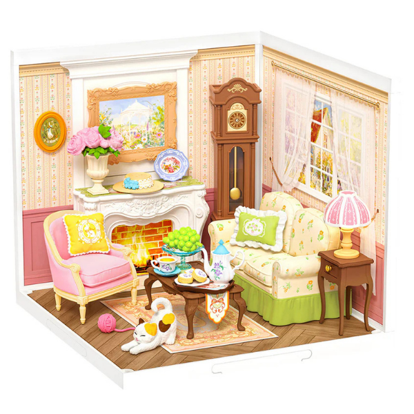 Crea una acogedora escena de tarde de té con este encantador kit DIY de Rolife. El modelo DW023 “Holiday Tea Time” recrea una cálida sala estilo campestre, con detalles como chimenea, reloj clásico, sillones cómodos y una mesa lista para disfrutar té y postres.