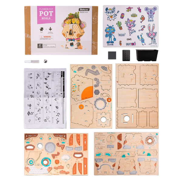 El modelo Koala FT732 combina la diversión de un rompecabezas 3D con la funcionalidad de una maceta decorativa. Fabricada en madera de alta calidad, cada pieza encaja con precisión, permitiéndote disfrutar del proceso de armado mientras creas una figura adorable y resistente.