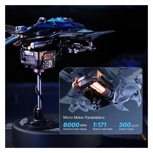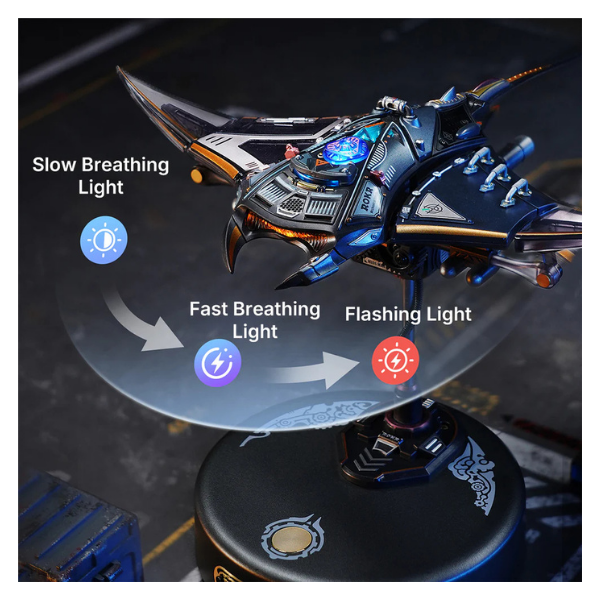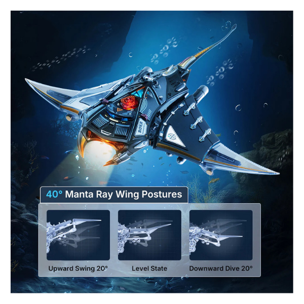Sumérgete en una experiencia creativa única con este puzzle 3D mecánico inspirado en la graceful raie manta. Cada detalle ha sido diseñado para recrear la natación fluida y casi hipnótica de este magnífico animal marino, con aletas que se mueven de forma rítmica y una iluminación LED que realza su estética futurista.
