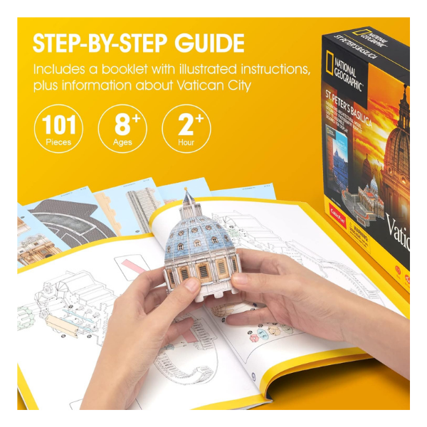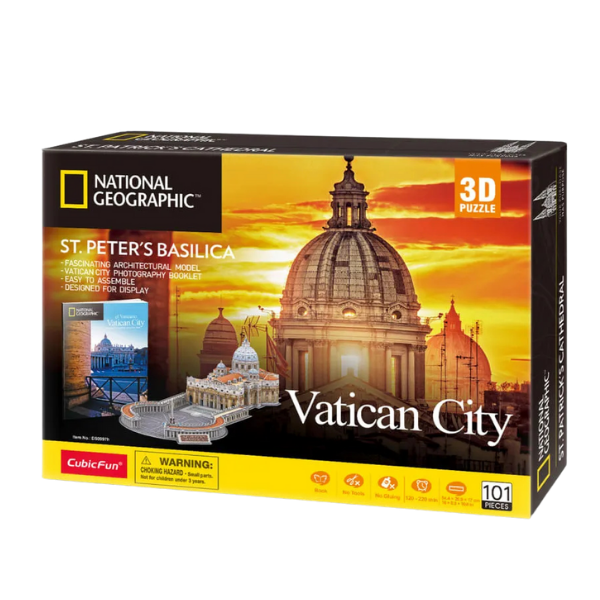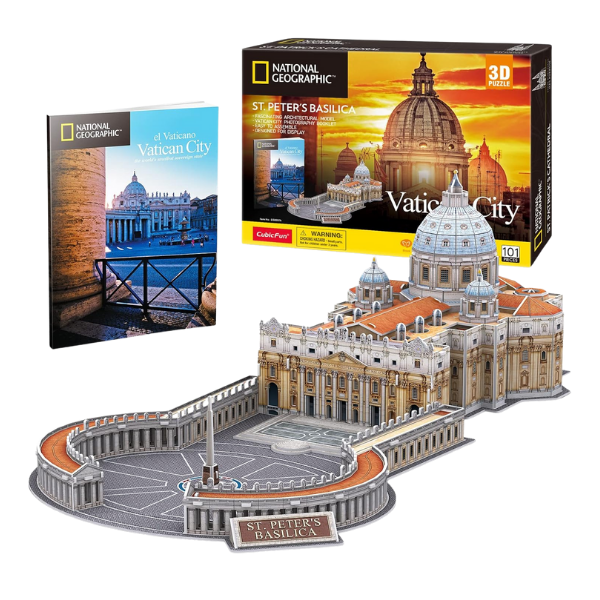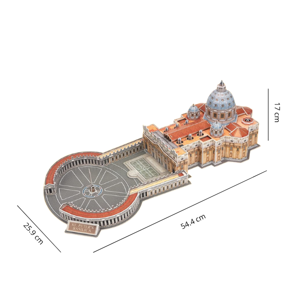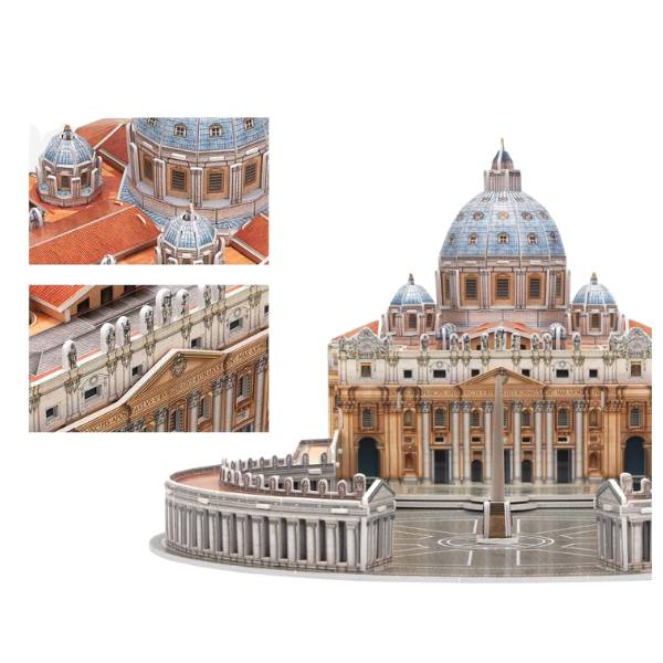 Descubre la majestuosidad de la Basílica de San Pedro con este impresionante rompecabezas 3D de CubicFun. Diseñado con gran detalle, este modelo te permitirá armar paso a paso uno de los monumentos arquitectónicos más icónicos del mundo, ubicado en la Ciudad del Vaticano.