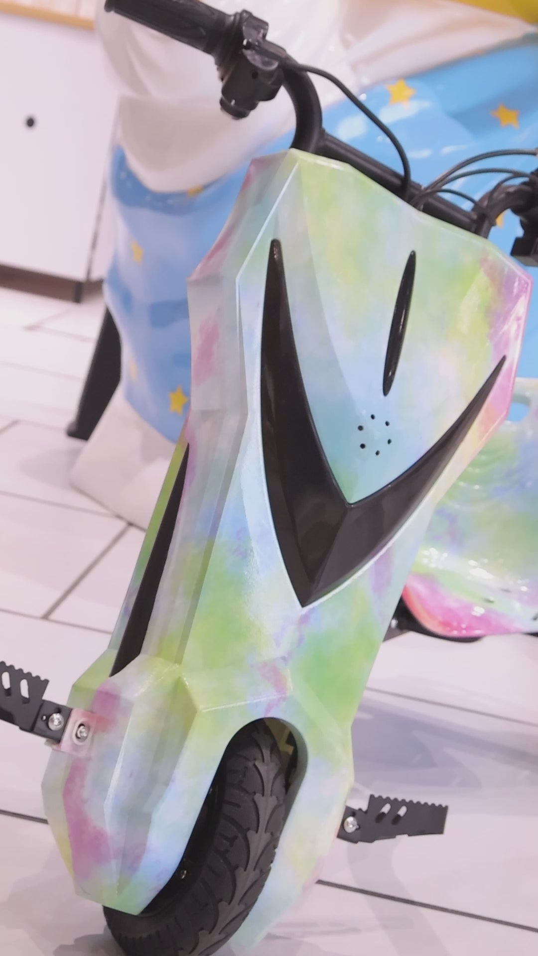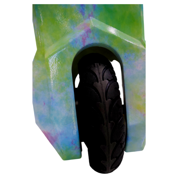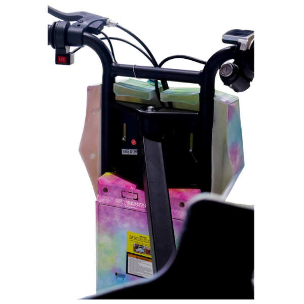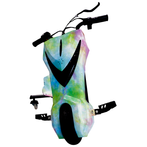 Esta avalancha eléctrica combina un diseño visual impactante con tecnología de punta, ideal para paseos recreativos y carreras en familia. Su acabado multicolor tipo tie-dye y su estructura aerodinámica garantizan que no pase desapercibida.