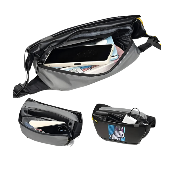 El Divoom Pixoo Shoulder Bag combina estilo urbano, practicidad y tecnología en un accesorio único. Su pantalla LED Pixel Art te permite mostrar animaciones, imágenes y mensajes personalizados desde tu smartphone mediante la app oficial de Divoom, convirtiéndolo en el bolso perfecto para destacar donde vayas.