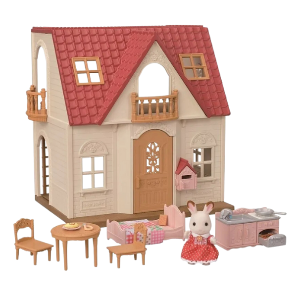 El set incluye muebles esenciales y accesorios para ambientar la casa, ideal para iniciar el juego imaginativo desde el primer momento. Compatible con otras casas y figuras de Sylvanian Families (se venden por separado).