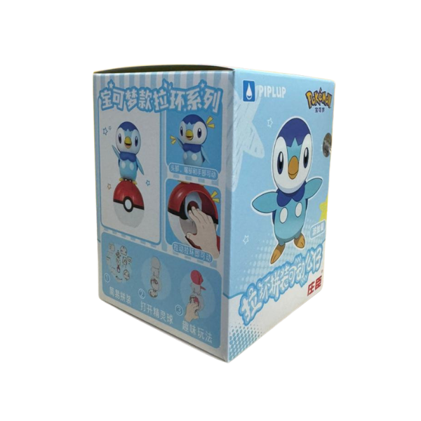 Al tirar del anillo ubicado en la base (tipo Pokébola), la figura realiza un movimiento mecánico, simulando una acción divertida.
