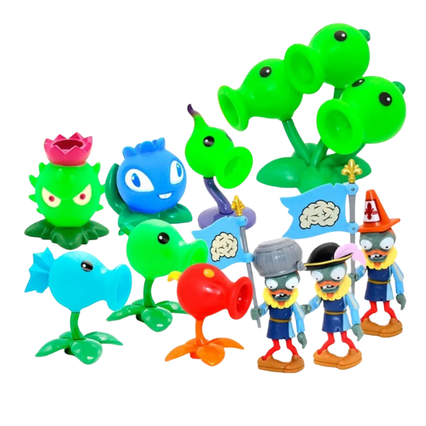 Figuras de acción inspiradas en plantas defensivas y zombies
