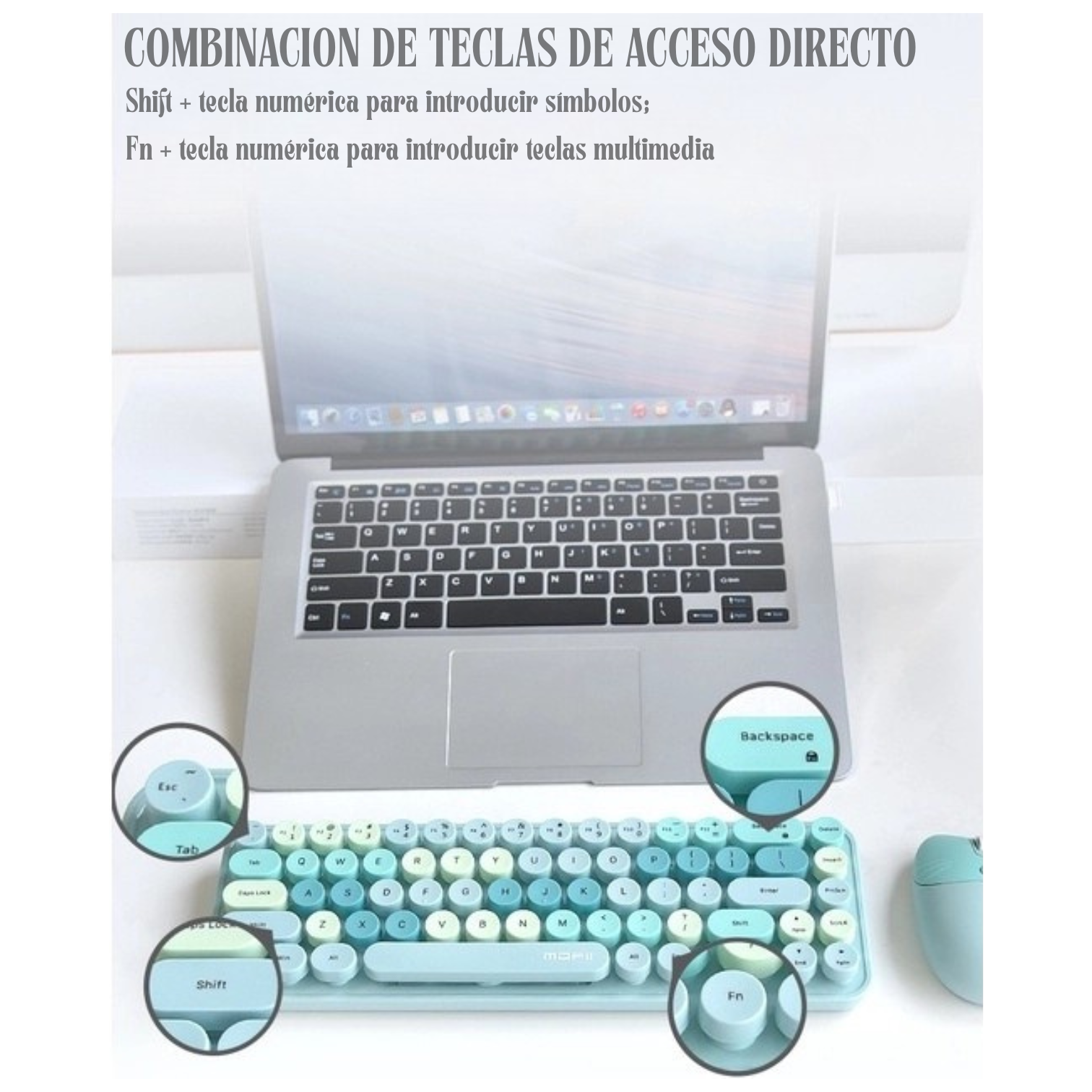 Dale estilo y funcionalidad a tu espacio de trabajo con el kit inalámbrico MOFII I Bean, un combo que combina diseño retro con tecnología moderna. Su teclado compacto con teclas redondeadas tipo máquina de escribir ofrece una experiencia de escritura cómoda y distintiva, mientras que el mouse ergonómico garantiza precisión y control en cada movimiento.