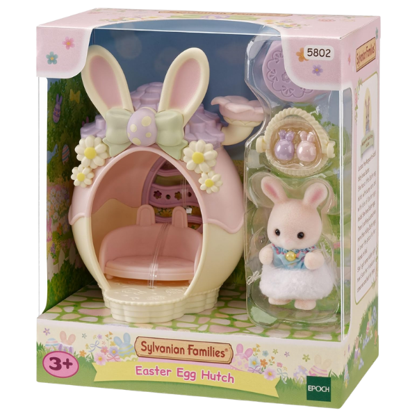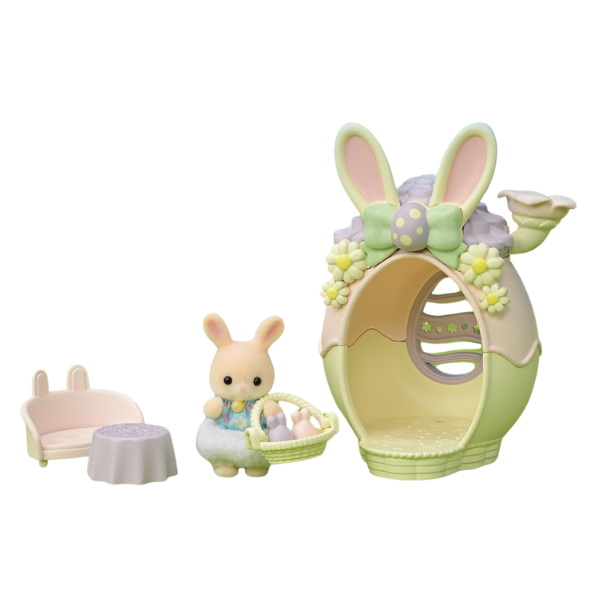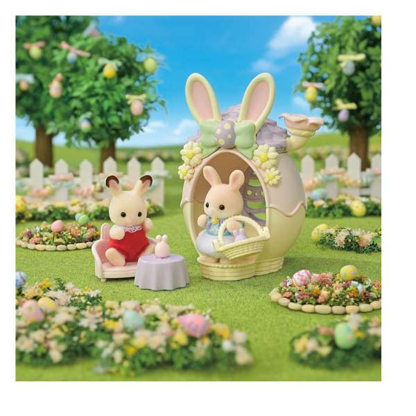 El Easter Egg Hutch de Sylvanian Families (también conocido como La Casita de Pascua) es un encantador set temático lleno de detalles adorables. Incluye una figura de bebé Conejo Chocolate vestida con un atuendo festivo y una linda casita en forma de huevo decorada con flores y orejitas de conejo. Perfecto para recrear escenas de primavera o ampliar tu colección Sylvanian.