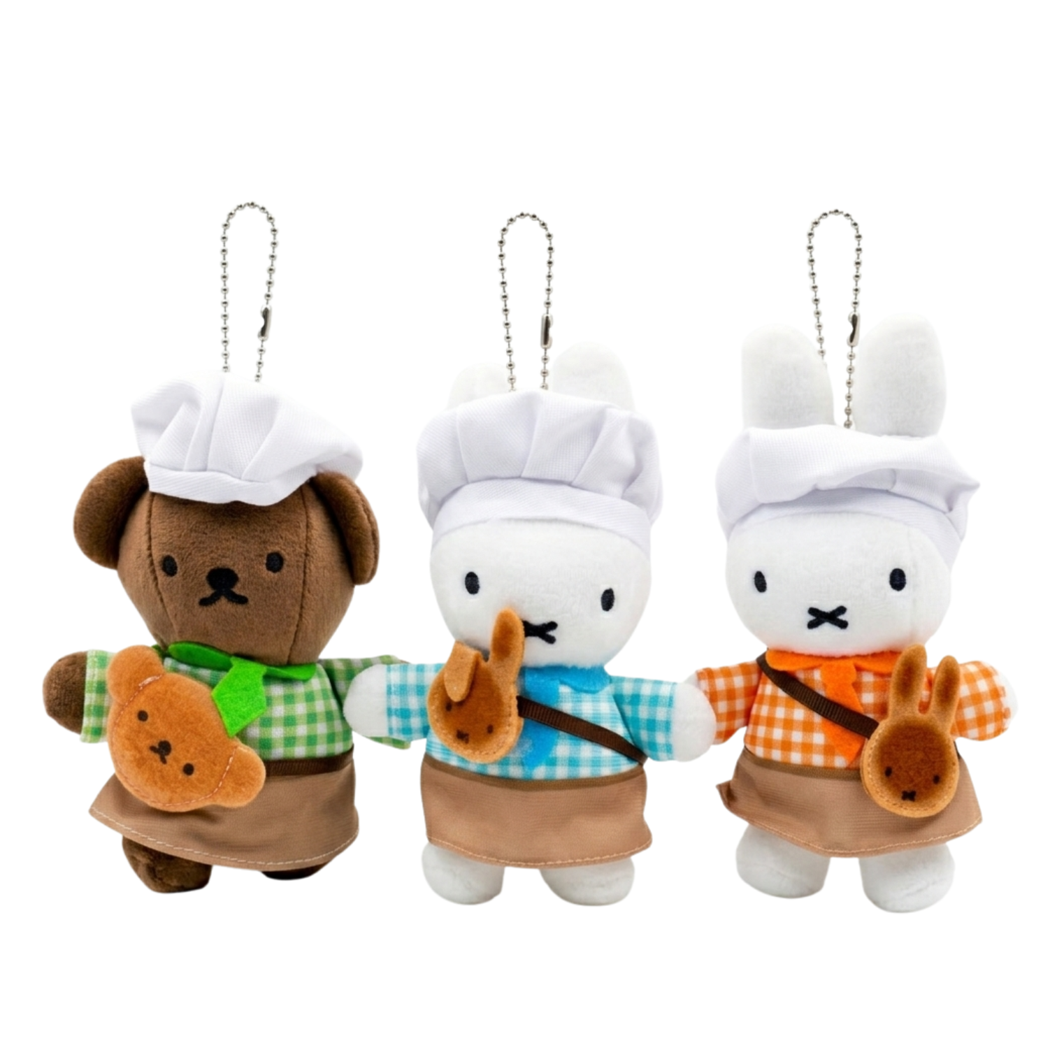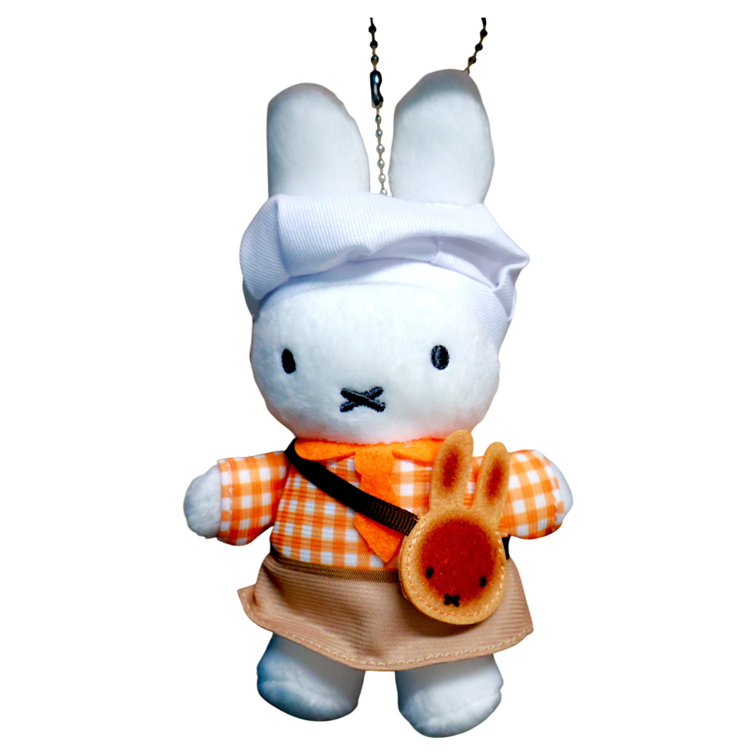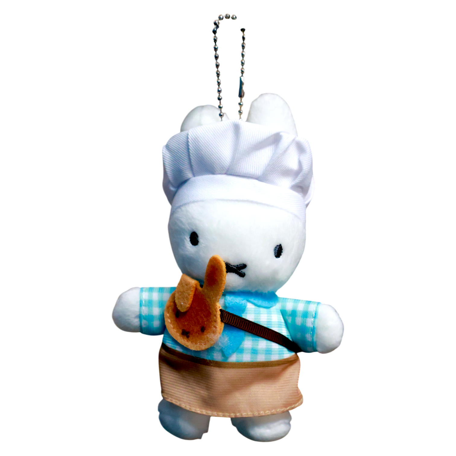 Muñeco de peluche tipo llavero inspirado en el icónico conejo Miffy en su versión chef, ideal para quienes buscan un accesorio tierno, coleccionable y funcional.