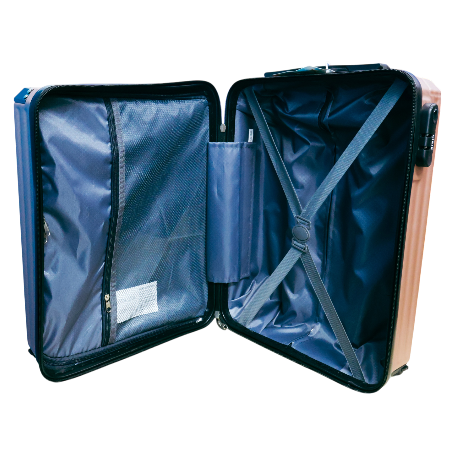 Equipada con asa telescópica retráctil de ajuste suave y ruedas giratorias multidireccionales, permite un manejo cómodo y fluido en aeropuertos, calles o estaciones. En el interior, ofrece una distribución práctica con dos compartimentos: uno con cierre completo para mayor seguridad y otro con correas elásticas tipo “X” que mantienen la ropa en su lugar.
