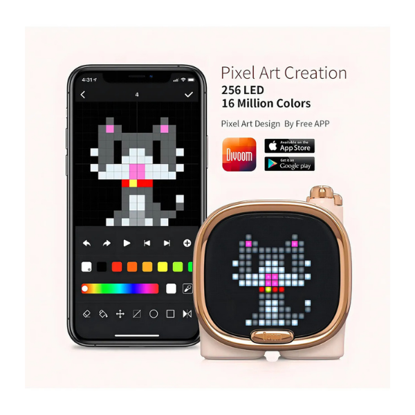 La pantalla LED pixelada permite mostrar animaciones, diseños personalizados e incluso notificaciones, dándole un toque único y dinámico. También preparamos numerosas herramientas de creación de arte de píxeles para usted en la aplicación Divoom, puede despertar su imaginación con este kit de píxeles inteligentes.