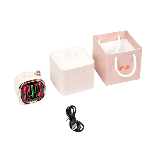 Disfruta de música, estilo y diversión en un solo dispositivo con este altavoz Bluetooth retro de Divoom. Su diseño compacto y elegante en color rosa con detalles dorados lo convierte en el complemento perfecto para tu escritorio, recámara u oficina.