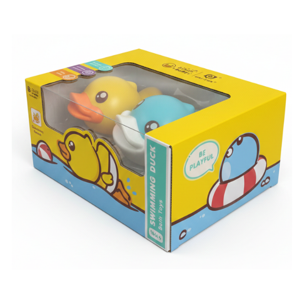 Su mecanismo con cuerda de arrastre y diseño resistente al agua permite que los patitos naden de un lado a otro sin necesidad de baterías, ofreciendo entretenimiento simple y seguro durante el baño o el juego en la piscina