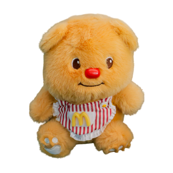 Diseño Icónico: Luce un delantal de rayas blancas y rojas con el logotipo clásico de la "M" dorada, evocando el estilo tradicional de McDonald's.