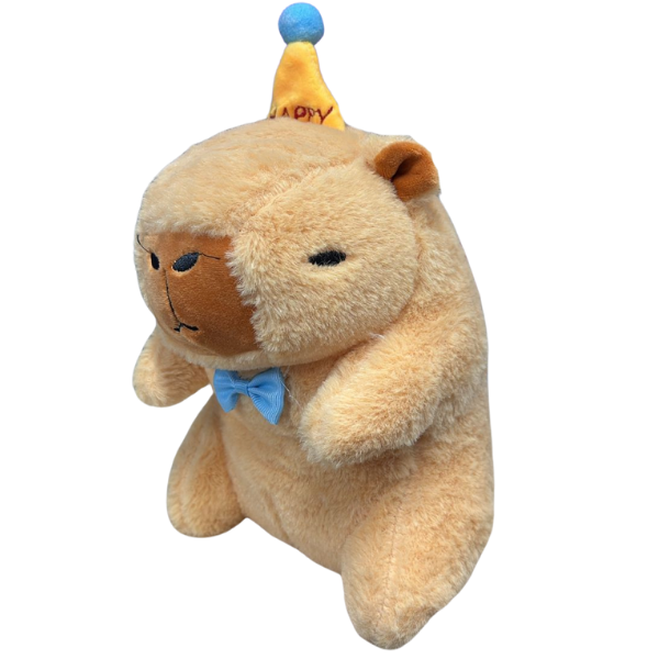 El Peluche Capibara con gorro de fiesta está listo para celebrar cualquier ocasión con su ternura y estilo inigualable. Su diseño alegre y suave textura lo convierten en el regalo perfecto para cumpleaños, aniversarios o simplemente para alegrar el día.