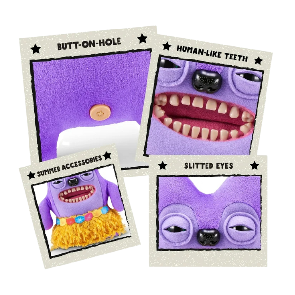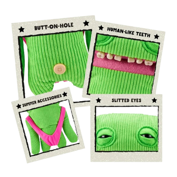 Hecho con materiales suaves y de alta calidad, este Fuggler de 9 pulgadas es ideal para abrazar, coleccionar o regalar a alguien con un sentido del humor único. Cada uno tiene su propio toque irreverente, por lo que ningún Fuggler es igual a otro.