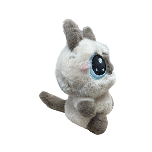 Este adorable peluche de gatito destaca por sus ojos grandes y expresivos, su carita tierna y su combinación de tonos grises que transmiten dulzura al instante. Su diseño estilo kawaii lo convierte en el complemento perfecto para regalar, decorar o coleccionar.