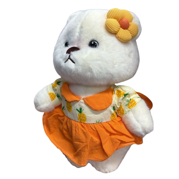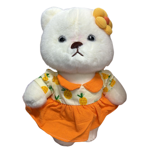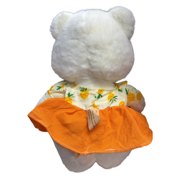 ¡Dulzura tropical que roba miradas! Esta adorable peluche de osita luce un encantador vestido con estampado de piñas, perfecta para llenar de color y alegría cualquier rincón. Su textura extra suave y su detalle de flor la convierten en el regalo ideal para niñas, coleccionistas o amantes de los peluches tiernos y originales.