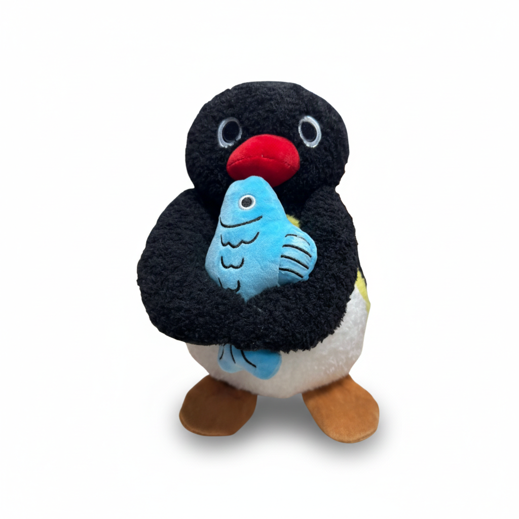 Detalle Temático Único: Pingu viene sujetando su pescado favorito, lo que añade un valor narrativo y visual encantador.