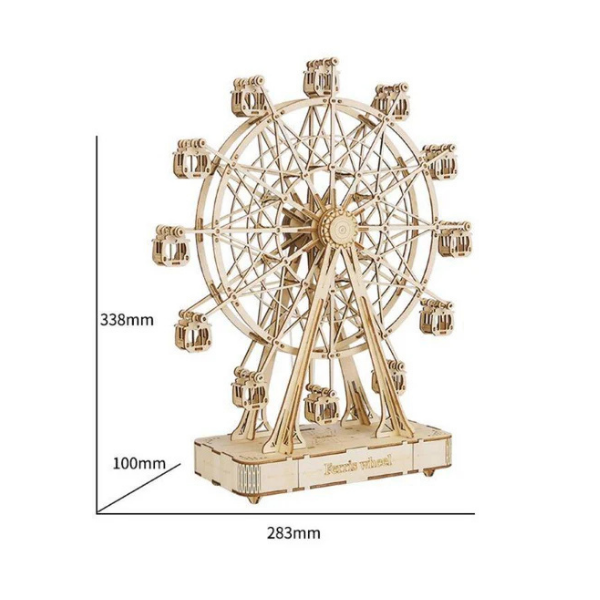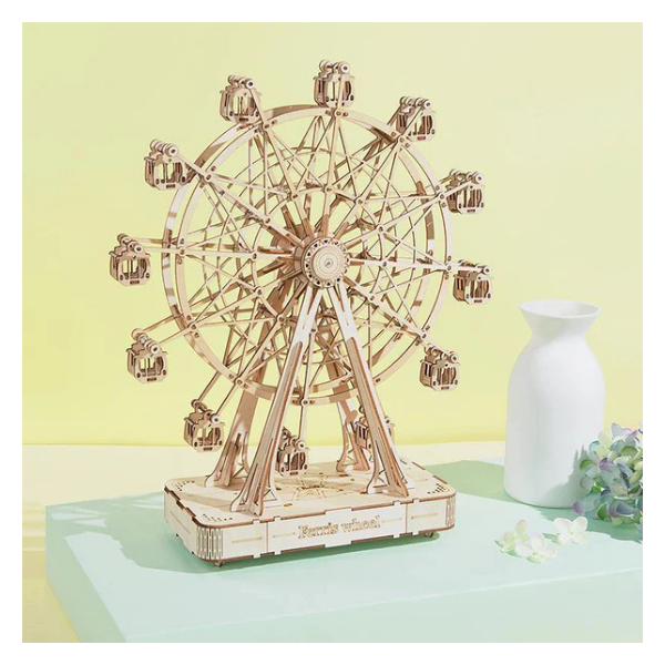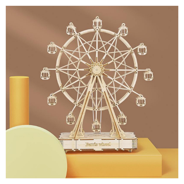 Disfruta de una experiencia única de creación y decoración con la Rolife TGN01, una caja de música en forma de noria construible que combina arte, entretenimiento y diseño elegante. Este rompecabezas 3D de madera te permite ensamblar una mini Rueda de la Fortuna con mecanismo musical de forma fácil y divertida.