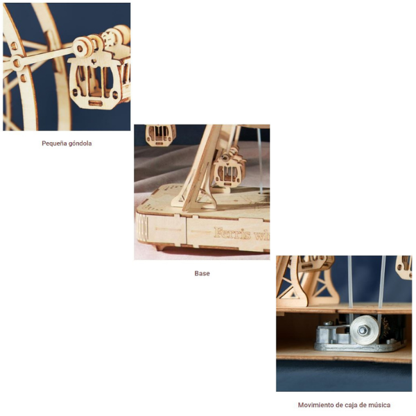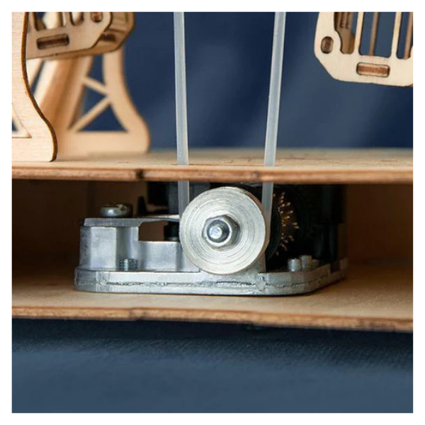 Caja de música integrada que reproduce la melodía “Around The World in 80 Days” mientras la noria gira.