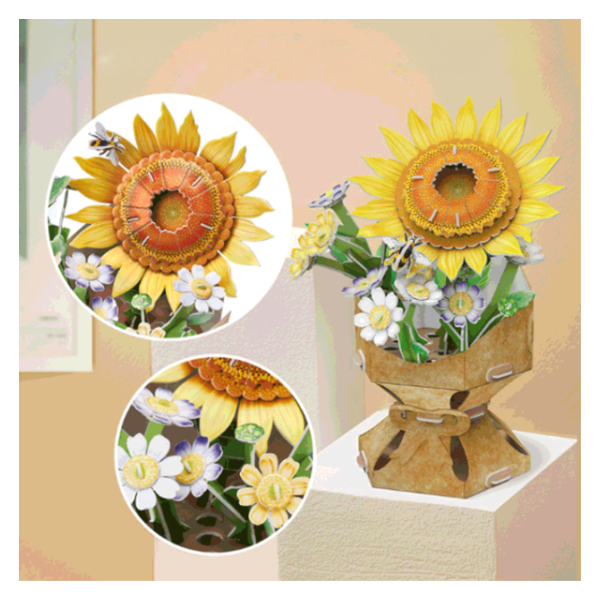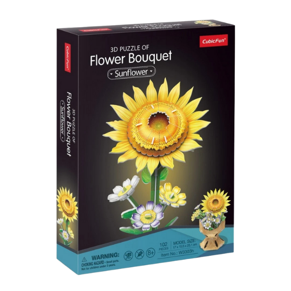 Transforma la diversión del armado en una hermosa obra decorativa con este rompecabezas 3D de CUBICFUN. El modelo Sunflower te permite construir un ramo de girasoles detallado y colorido, ideal para decorar cualquier espacio o como regalo creativo para amantes de las manualidades.
