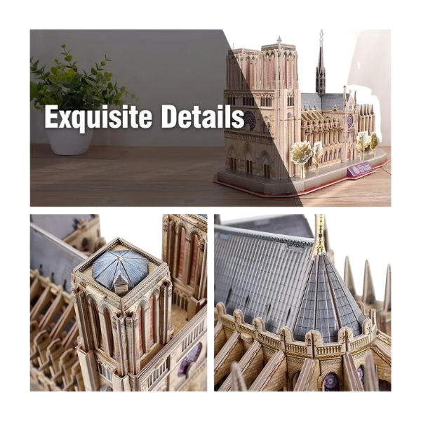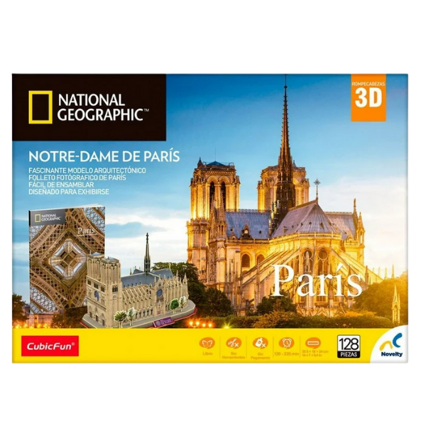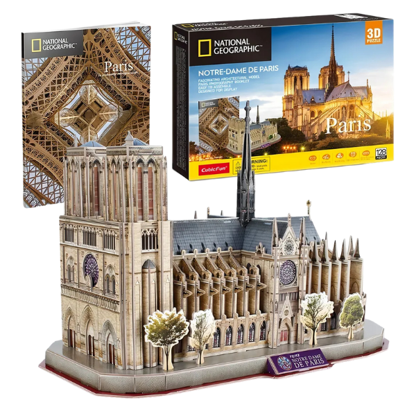 Revive la grandeza gótica de una de las catedrales más emblemáticas del mundo con este rompecabezas 3D de CubicFun en colaboración con National Geographic. El modelo recrea con gran realismo la Catedral de Notre Dame, símbolo de París y obra maestra de la arquitectura medieval.