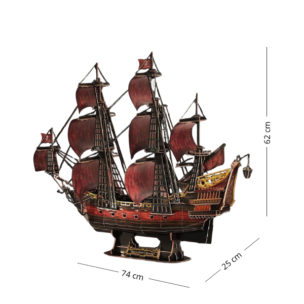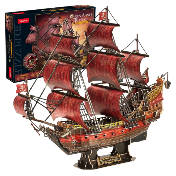 Navega hacia una aventura llena de historia y leyenda con el Queen Anne’s Revenge: Red Edition, la emblemática nave del temido pirata Barbanegra. Este impresionante rompecabezas 3D de CUBICFUN combina realismo, diseño detallado y entretenimiento, ideal para coleccionistas, amantes de los barcos y fanáticos de los desafíos de construcción.