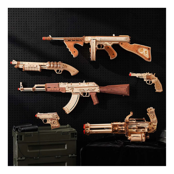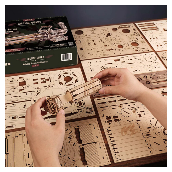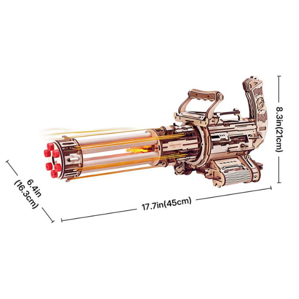 Lleva la emoción del diseño mecánico a tus manos con este kit 3D de madera ROKR Rotating-Barrel Machine Gun (LQA01), una combinación perfecta de creatividad, ingeniería y diversión interactiva. Más que un rompecabezas, este modelo se transforma en una ametralladora giratoria funcional que dispara gomitas de caucho en una experiencia de armado y juego incomparable para los amantes de los proyectos DIY y los modelos dinámicos.
