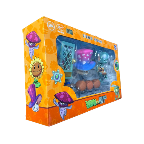 Revive las batallas más divertidas de Plants vs Zombies con este set especial de figuras, perfecto para fans, coleccionistas y amantes del juego. Este paquete combina un Zombie, una Puerta blindada estilo PvZ, proyectiles y una figura de planta con sombrero llamativo, creando un set único y diferente.