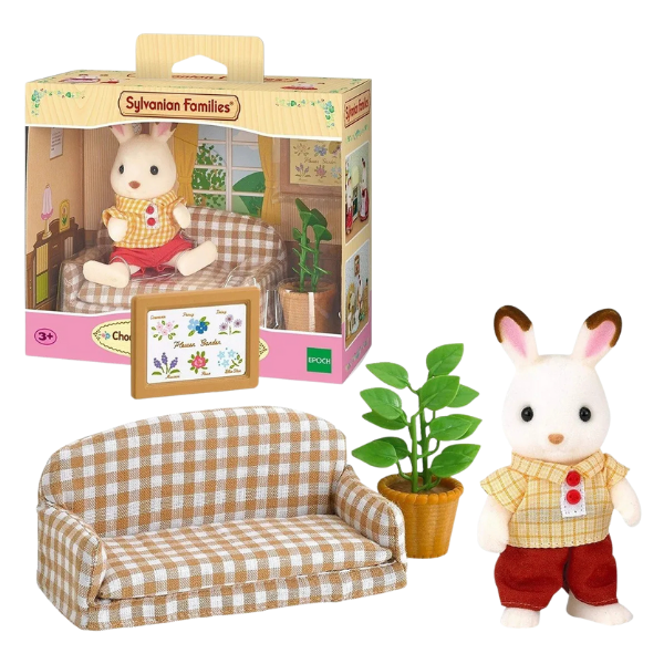 Crea un ambiente acogedor en tu hogar Sylvanian y disfruta de los encantadores momentos de Papá Conejo Chocolate en su sala.
