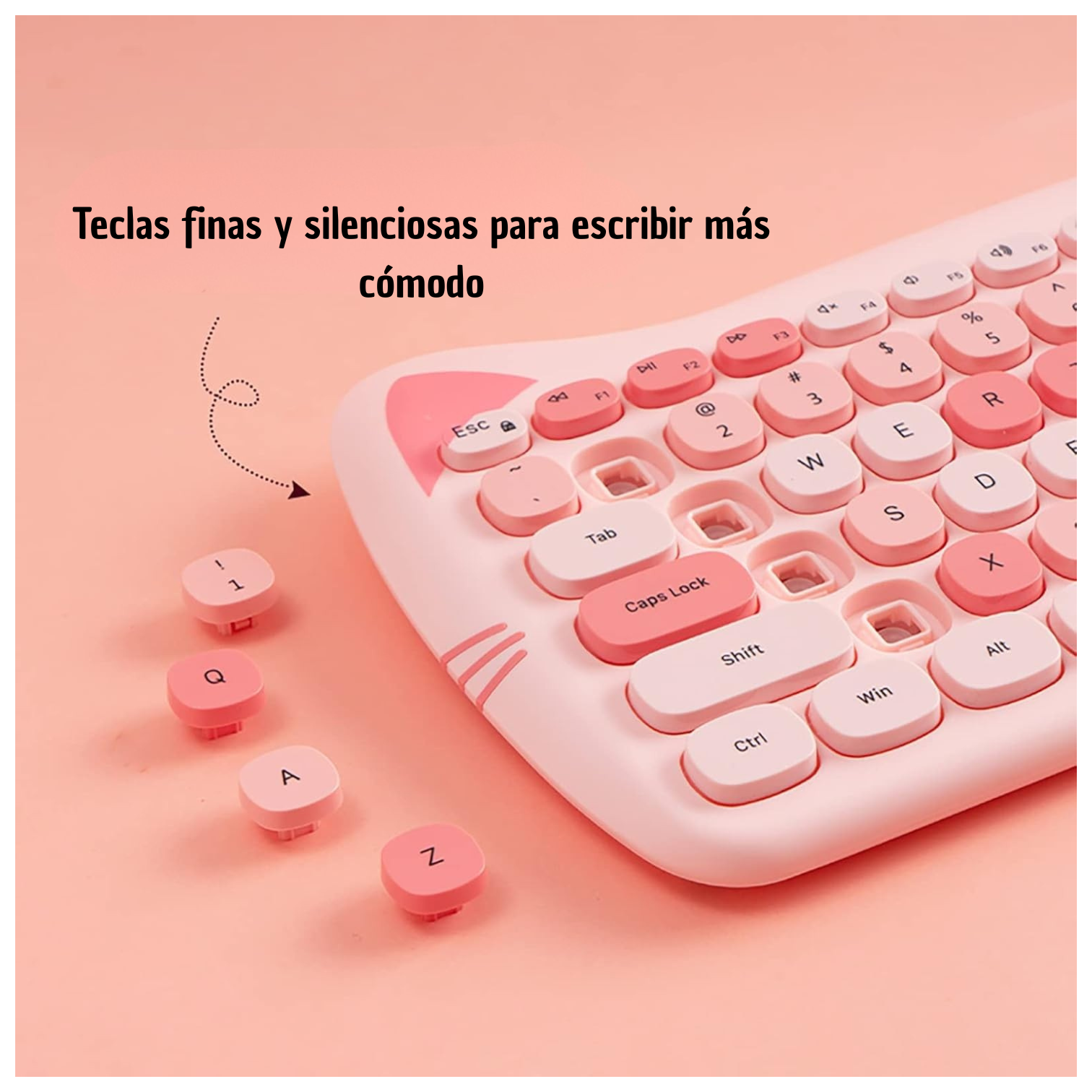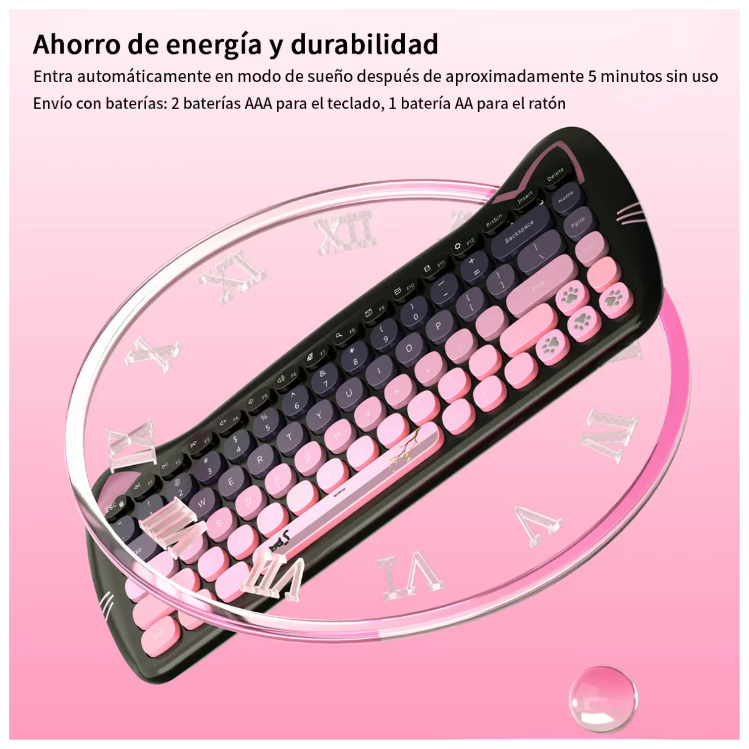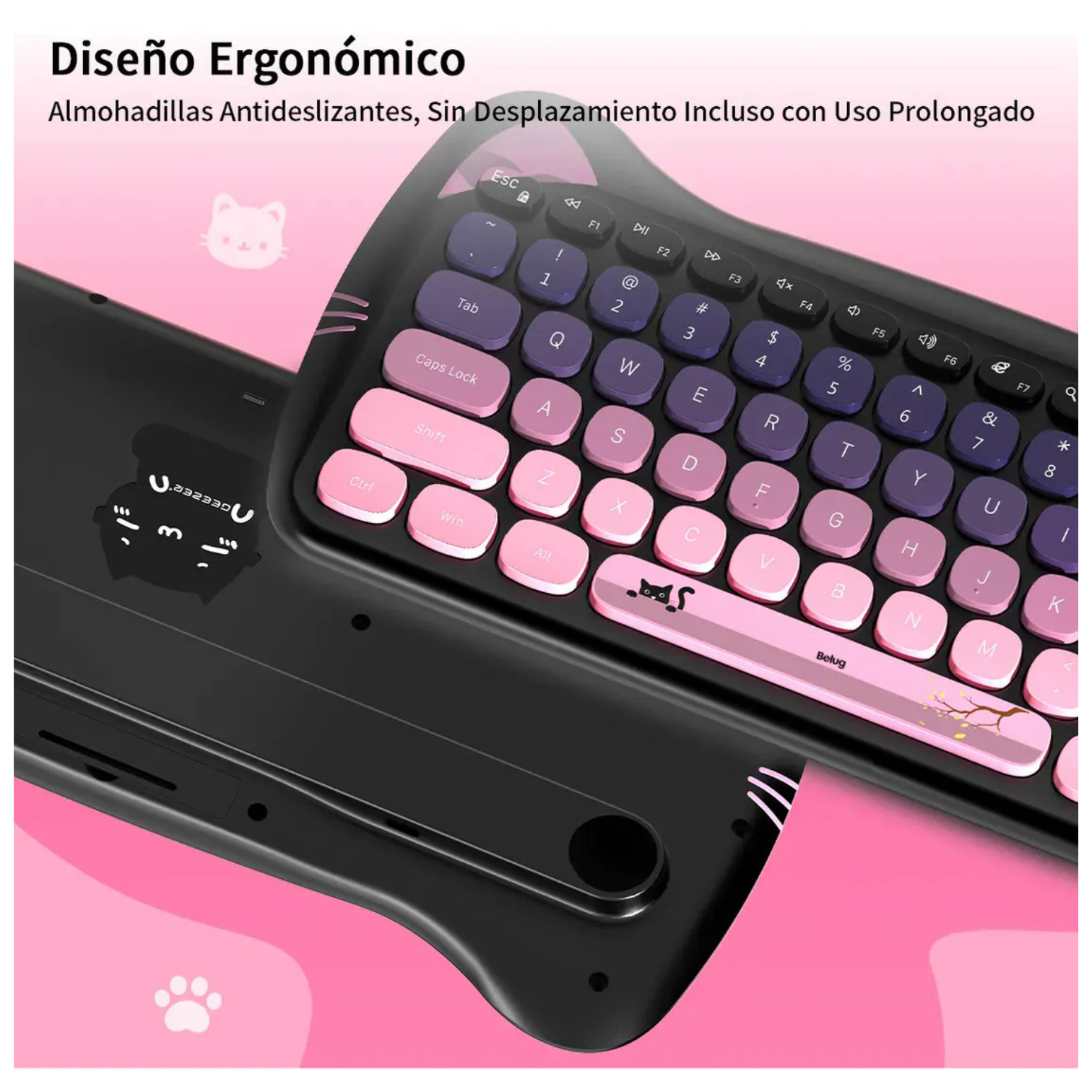Diseño Único de Gatito: El teclado cuenta con sutiles detalles de orejas de gato y una estética de teclas redondeadas tipo "retro pop" que brindan una experiencia táctil cómoda y silenciosa.