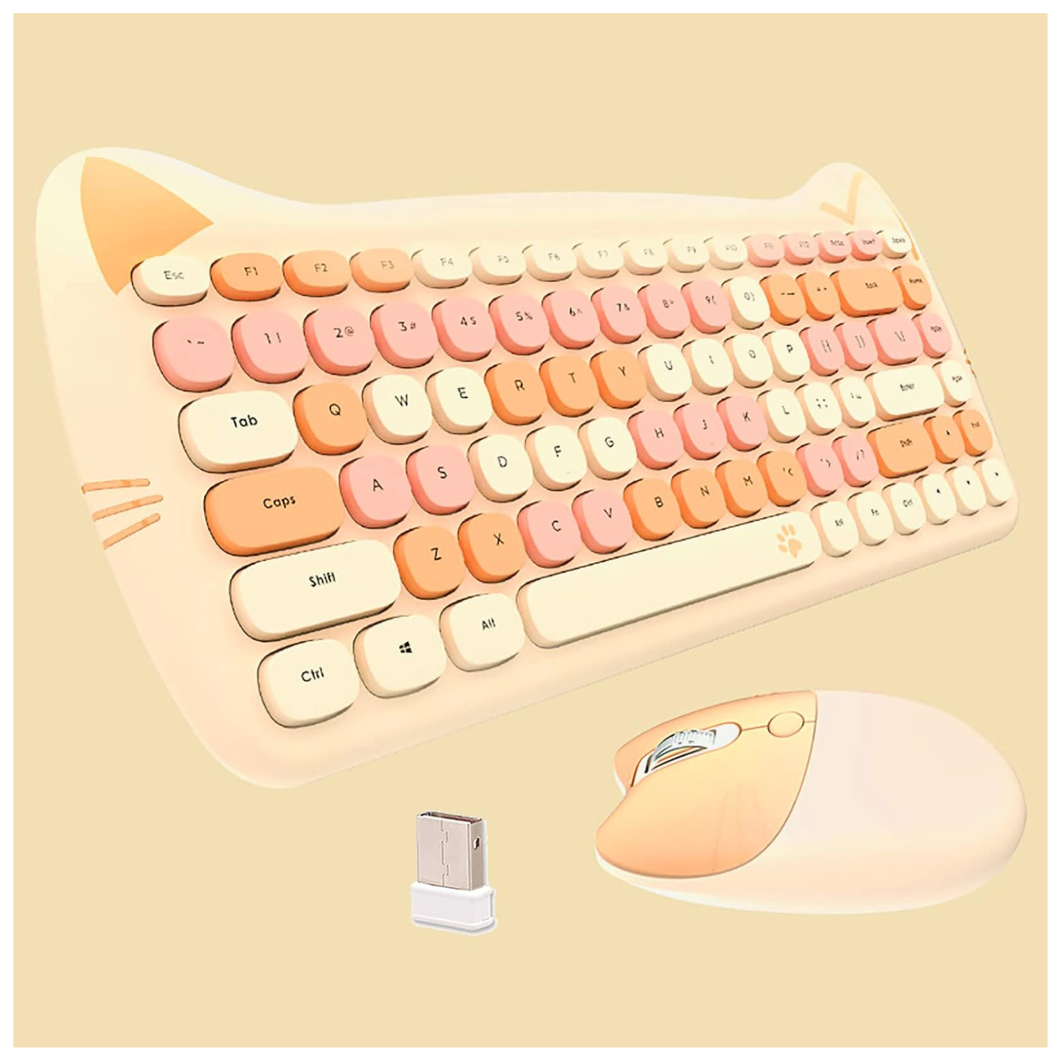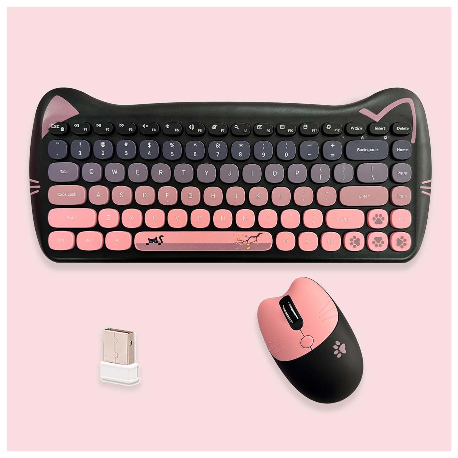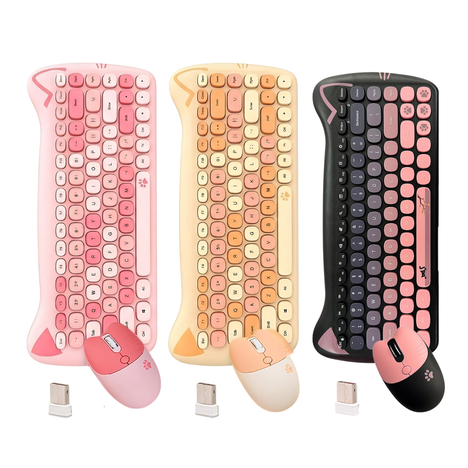Diseño Único de Gatito: El teclado cuenta con sutiles detalles de orejas de gato y una estética de teclas redondeadas tipo "retro pop" que brindan una experiencia táctil cómoda y silenciosa.