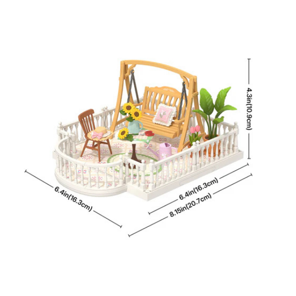 Con elementos cuidadosamente diseñados, esta extensión permite crear espacios al aire libre con encanto, perfectos para exhibir tu estilo personal y dar vida a tu universo en miniatura. Ideal para coleccionistas, aficionados al modelismo y amantes de la decoración temática.